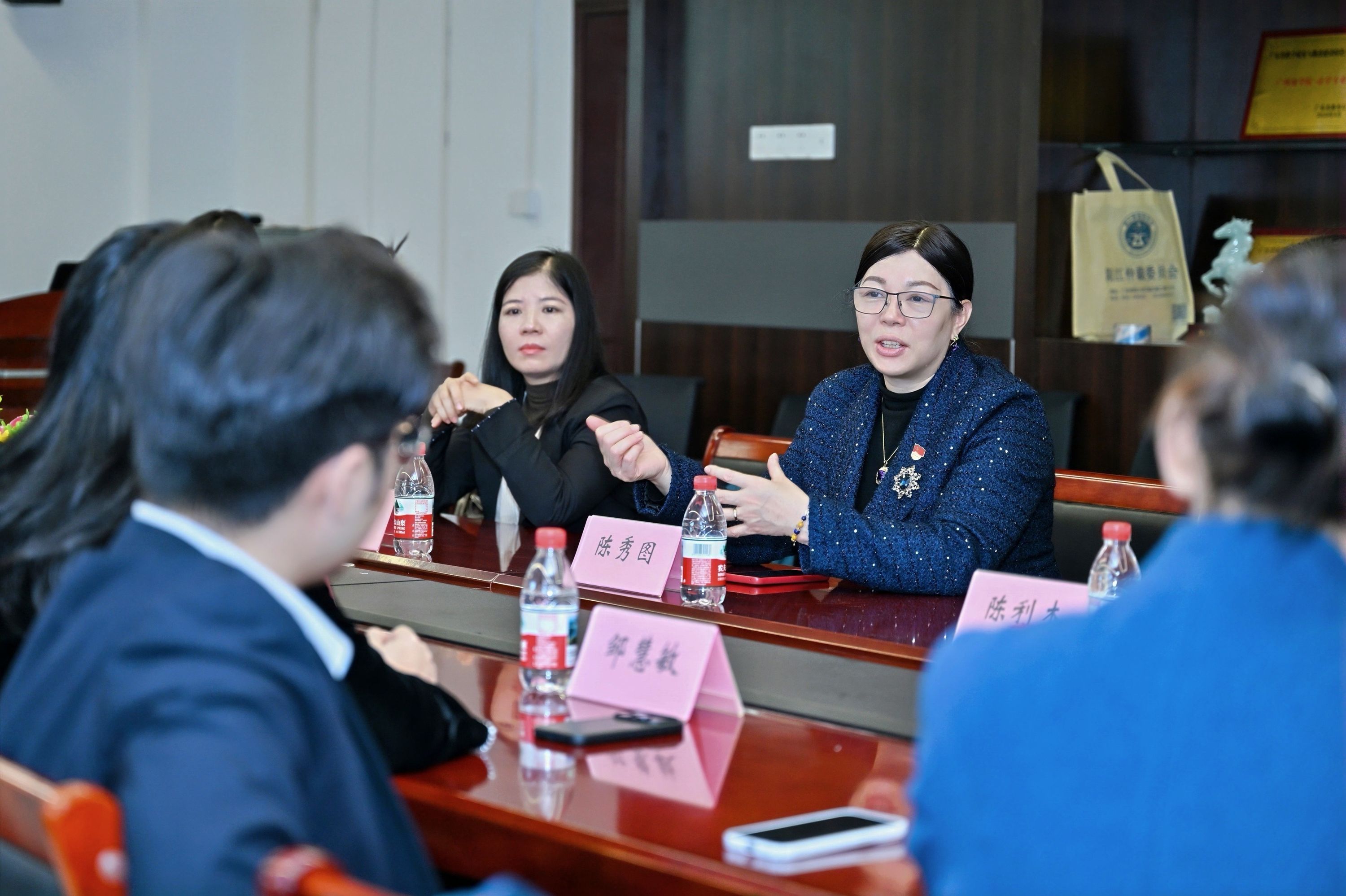 陈秀图详细介绍了法学院的历史沿革、师资队伍、课程建设以及学生规模等情况。她表示学院注重实践教学,重视政校行企合作,全心全意为社会培养应用型法治人才。陈建彬、邹慧敏作为代表介绍了两所律所的发展历程、业务特色与行业资源,重点提及商事纠纷处理、跨境法律服务等核心业务优势。
