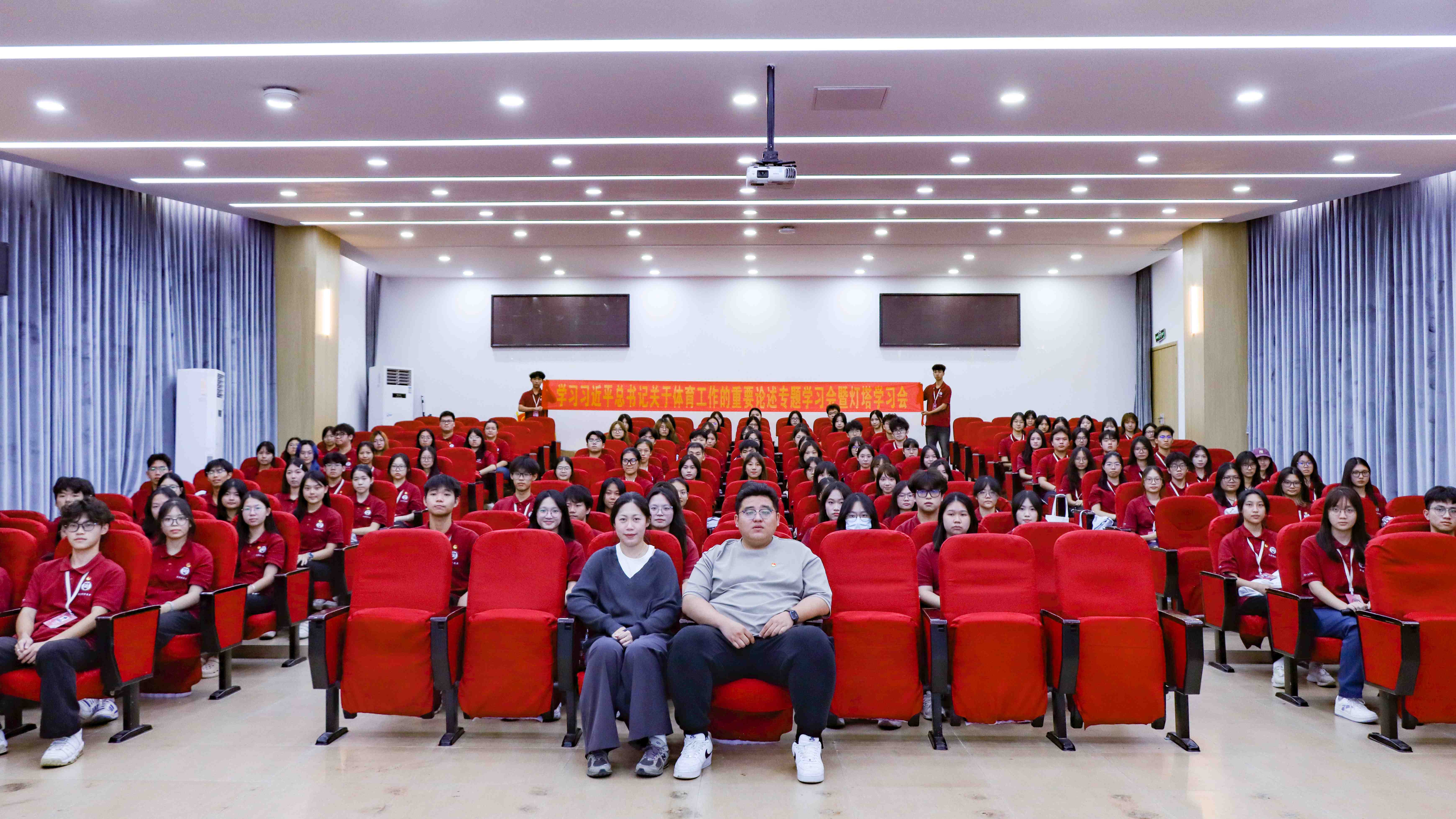 法学院团学于11月16日晚上在第四教学楼第二报告厅召开习近平总书记关于体育工作的重要论述专题学习会暨灯塔学习会。出席本次学习会的有法学院团委书记马宇皓以及团学全体成员,法学院团委学生副书记何智茵主持了本次学习会。